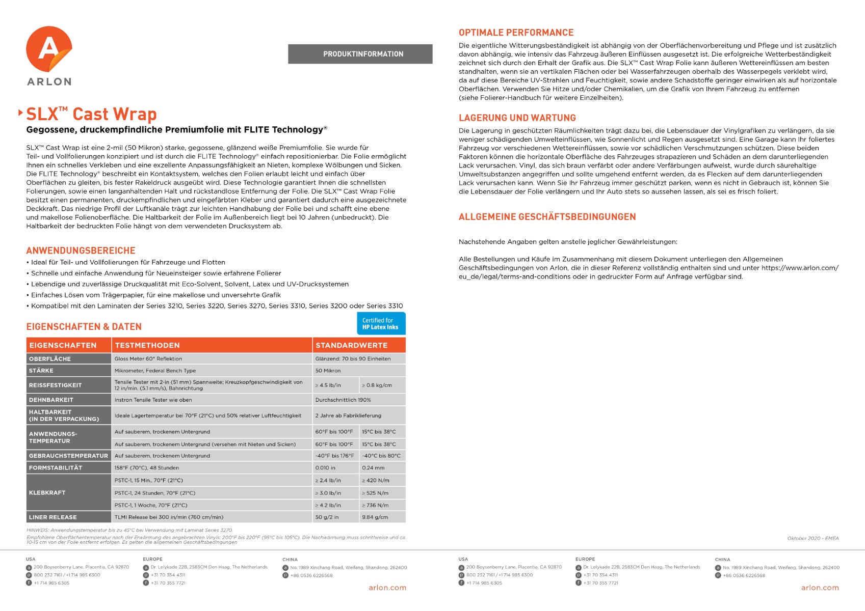 Mit einer Haltbarkeit von bis zu 10 Jahren (unbedruckt) ist die Arlon SLX™ CWF eine der langlebigsten Folien ihrer Klasse.
