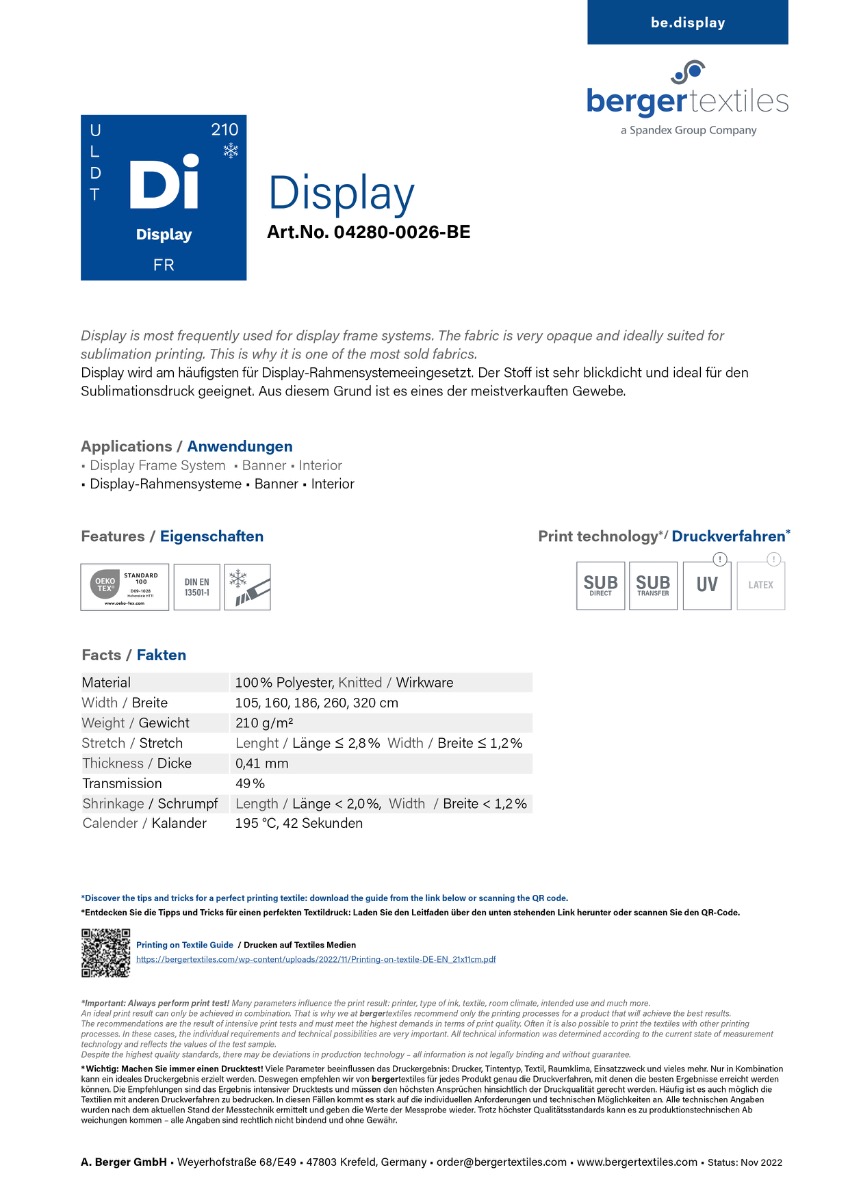Das technische Datenblatt stellt Ihnen alle relevanten Informationen zu diesem Produkt in strukturierter und übersichtlicher Form zur Verfügung. Es enthält detaillierte Angaben zu Materialaufbau, Oberflächenbeschaffenheit, Flächengewicht und technischen Kennwerten sowie wichtige Hinweise zur Druck- und Weiterverarbeitung. Darüber hinaus finden Sie Informationen zu empfohlenen Einsatzbereichen, Haltbarkeit, Lagerung und normrelevanten Eigenschaften. Das Datenblatt dient als verlässliche Entscheidungs- und Planungsgrundlage für Anwender, Weiterverarbeiter und professionelle Anwender.